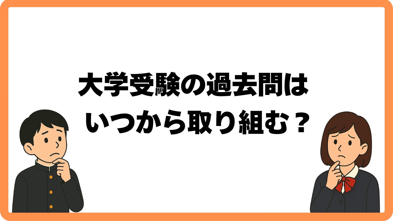 過去問は大学受験における重要な対策手段ですが、開始時期が早すぎても遅すぎても効果が薄れてしまいます。基礎がある程度固まった高3の秋以降を目安に、段階的に取り組むのが理想です。
